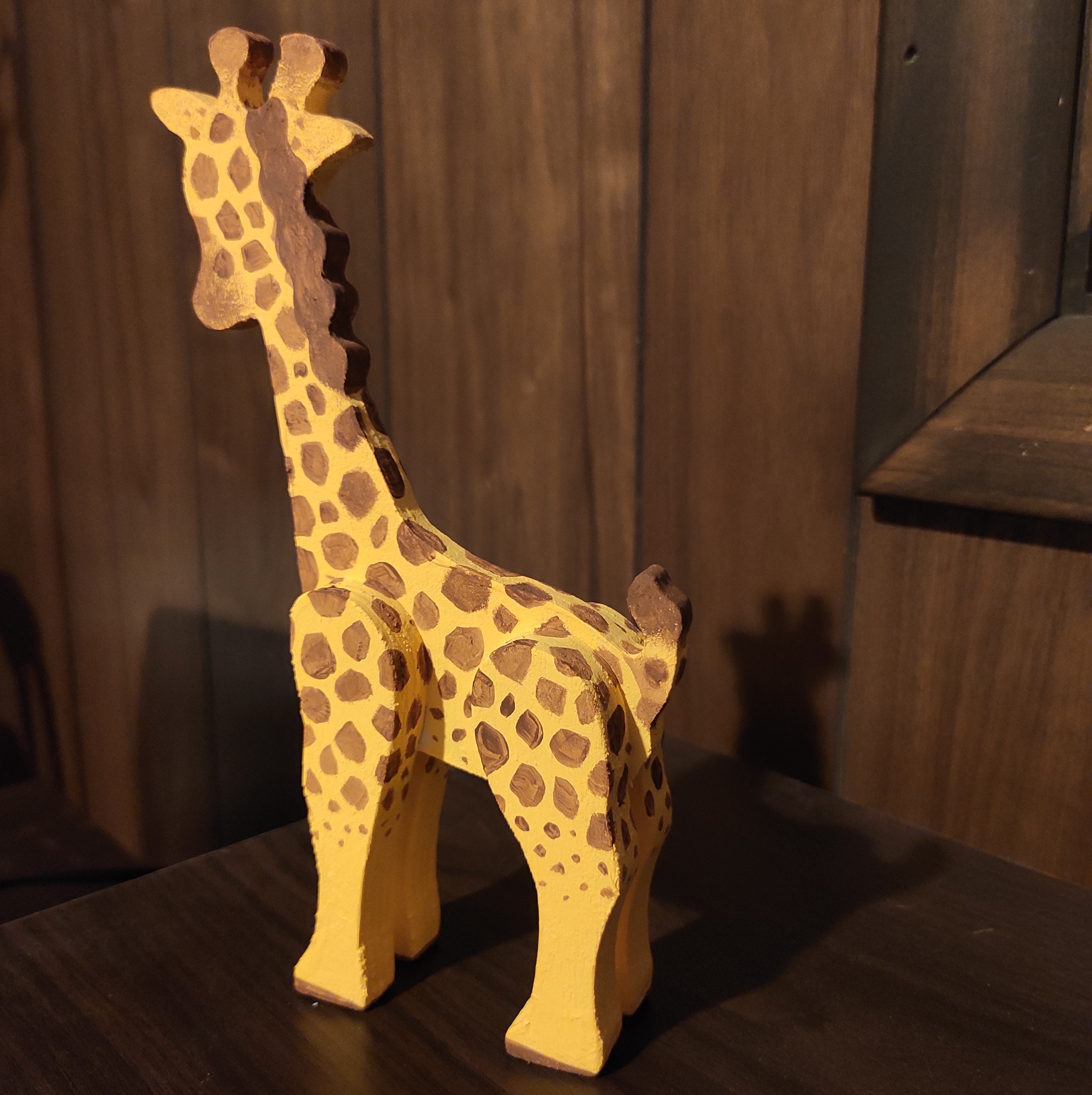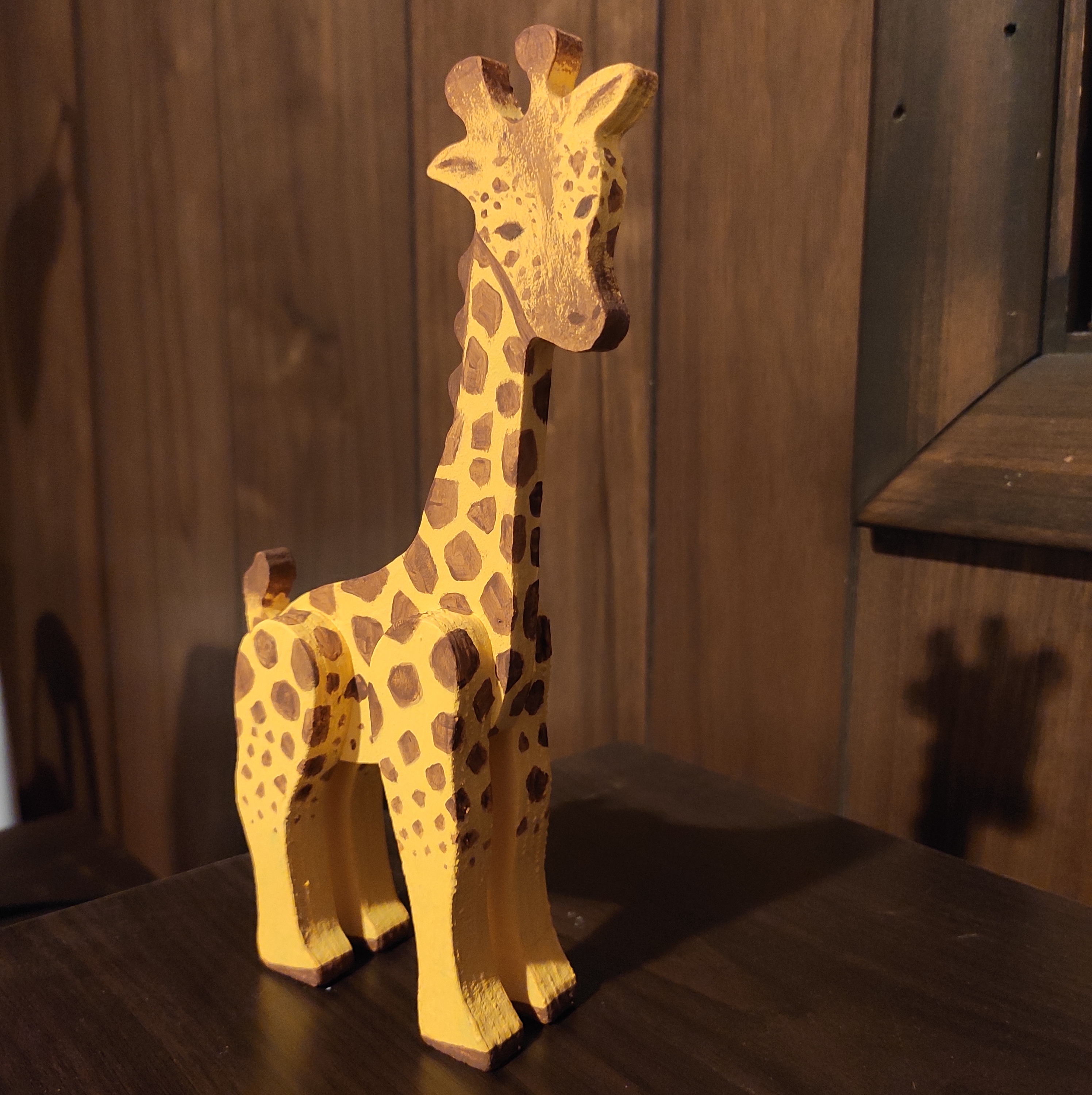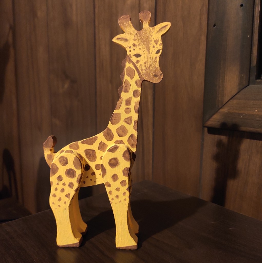 A wood giraffe cutout from the dollar tree, painted by me, with Craft Smart matte acrylic paint.