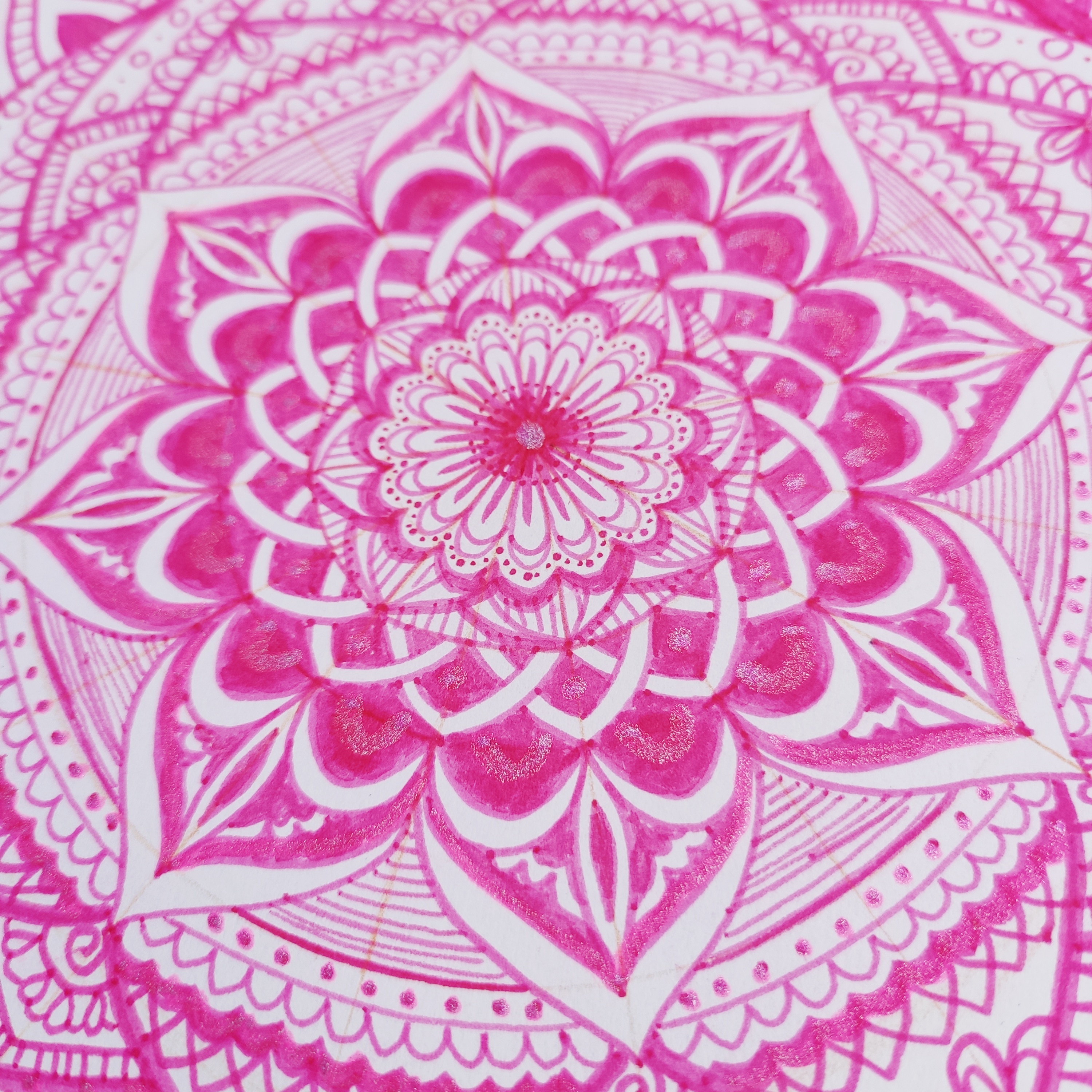 The second step was to lay guidelines for the mandala. I used an orange colored pencil so I wouldn’t have muddy graphite lines. Decided to use tools this time, even though I love fully freehanding mandalas. I knew if I wasn’t satisfied with the artwork I would start from scratch, and using guidelines usually prevents that from happening, so I decided to play it safe this time.